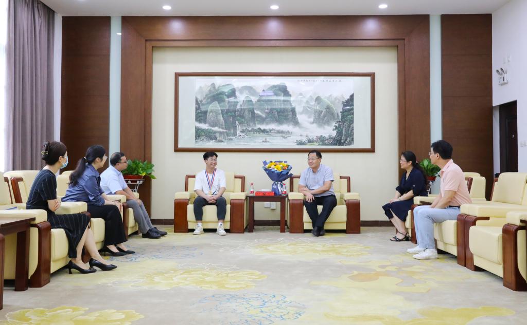 慰问座谈会上,马献力亲切地询问梁家豪捐献后的身体恢复情况后,代表学校送上鲜花和慰问金,并对他无私捐献造血干细胞、挽救他人生命的善举给予充分肯定和高度评价。马献力说,梁家豪用自己的爱心、勇气挽救了患者生命,为另一个家庭送去了希望,用实际行动弘扬了“人道、博爱、奉献”的红十字精神,展示了桂医青年的责任、情怀和担当,这既是他本人的光荣,也是全校师生的光荣。学校相关部门要进一步加大在广大师生中的宣传力度,让榜样的力量接续传递,引领我校树立好新时代文明新风。