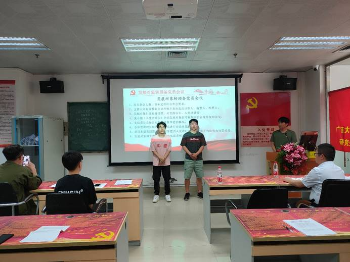 下一项议程是发展对象转预备党员的会议。两位发展对象曾亚东、叶志同志汇报了自身情况和自己对党的认识,在听取入党介绍人关于两位发展对象的情况汇报和接受党支部成员的考察后,经全体正式党员投票通过,同意接收为预备党员。