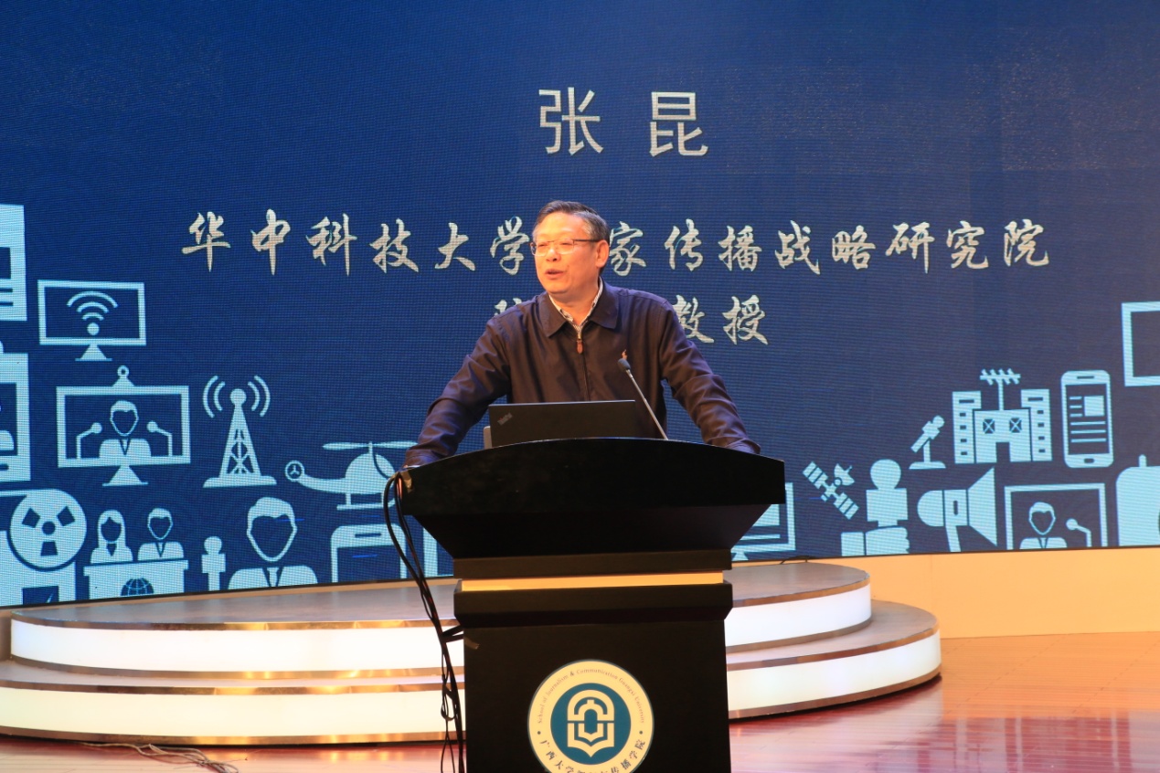 华中科技大学国家传播战略研究院院长张昆教授在致辞中介绍了国家传播战略研究院的发展历程与主要工作,阐述了他对我国传播战略的愿景:一是要建设强大的媒体;二是要借助强大的媒体影响彰显国家形象;三是要帮助国家在国际社会、在全球舞台上占领道义的高地,引领远者来、来者安。