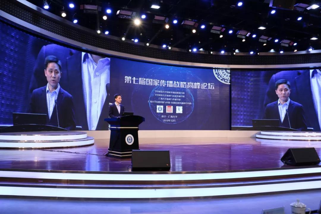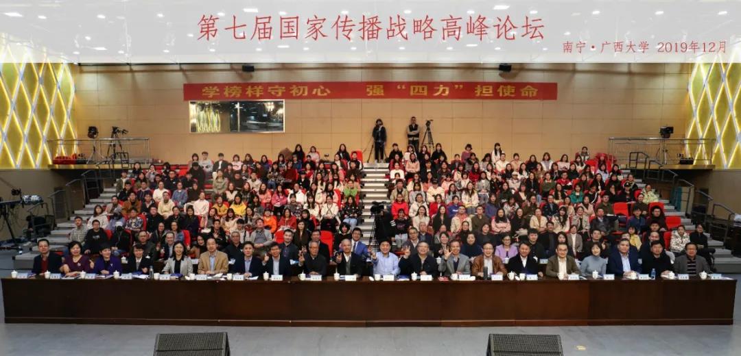第七届国家传播战略高峰论坛于12月28日在广西大学隆重举行。本次论坛由华中科技大学国家传播战略研究院、华中科技大学新闻与信息传播学院、广西大学新闻与传播学院、广西大学东盟传播与中国-东盟区域传播研究中心共同主办。论坛的主题为“民心相通、‘一带一路’与人类命运共同体”,来自华中科技大学、广西大学、中国人民大学、中国传媒大学、上海交通大学、北京外国语大学、海南大学、湖南师范大学、天津师范大学、大连外国语大学、浙江师范大学等十多所高校,以及人民网舆情数据中心、中国外文局等科研院所的近50位专家学者齐聚南宁,共同探讨“一带一路”、国家传播战略的相关问题并分享了前沿智慧。