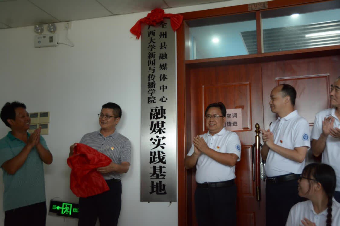 7月8日,由广西大学新闻与传播学院、全州县融媒体中心共建的“融媒实践基地”,在广西桂林全州县融媒体中心挂牌成立,这是该院继横县融媒体中心之后建立的第二个融媒实践基地。广西大学新闻与传播学院党委书记唐兴、全州县融媒体中心主任邓立剑共同为基地揭牌。