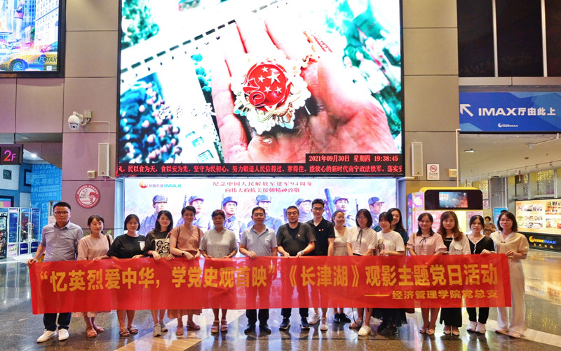 经济管理学院党总支部率先开展了“ 忆英烈爱中华,学党史观首映”观影《长津湖》首映主题党日活动