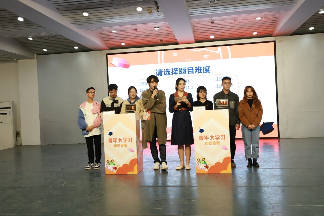 青春逢盛世,奋斗正当时。12月19日,我校青年大学习直播竞赛决赛在大学生活动中心201室火热开赛。文学院、传媒学院、材料与环境学院、化学化工学院、民族学与社会学学院、政治与公共管理学院六支代表队进入决赛,共同角逐冠亚季军。文学院2020级汉语言文学写作班方仕仗、黄秋兰,2020级汉语言文学师资3班韦玉霜三位同学代表文学院参赛。校团委宣传部副部长陈宇鹏以及部分学生到场观赛。经过激烈的角逐,文学院最终以115分的积分荣获季军。
