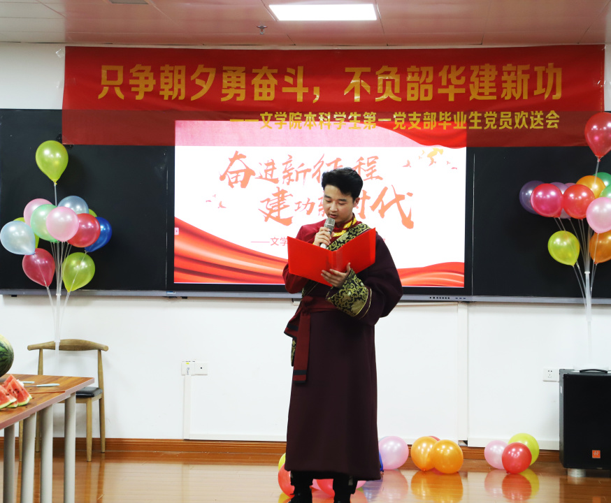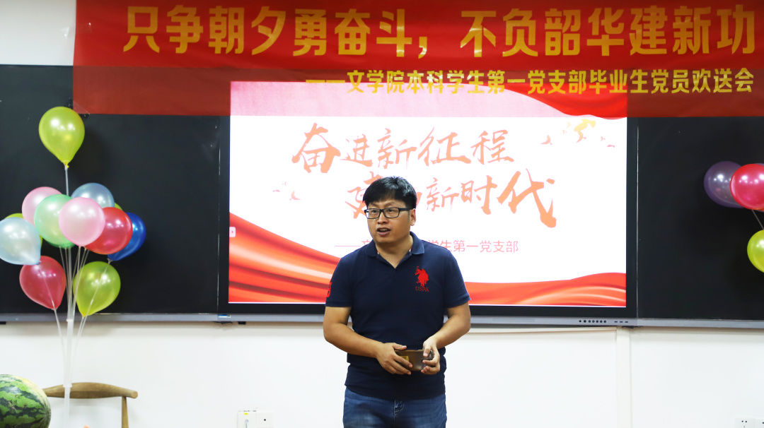为全面贯彻落实党的二十大精神,以实际行动打造支部的“家”文化精神,营造温馨的组织氛围,打造“走进一支,你以一支为荣;走出一支,一支以你为荣”的良好团队精神风貌,建设“支部之家”,为支部凝心聚魂,让毕业生党员充分感受到党组织的温暖,铭记党员初心使命,在新的征程上不忘初心、砥砺奋进。6月9日晚,文学院本科学生第一党支部在文科综合实训大楼1102室举行“只争朝夕勇奋斗,不负韶华建新功”毕业生党员欢送会。支部书记陈爱中、支部全体党员与会,会议由组织委员覃志林主持。