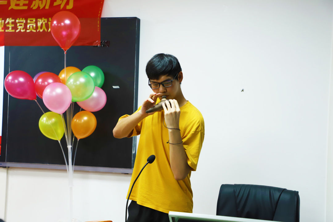 本科学生第一党支部是聚合精英人才与民族特色的支部,党员同志们多具才艺,为欢送会献礼。随着音乐响起,黄馨颉携优美舞蹈《聚光》为毕业生党员送上祝福;李鑫悦陶笛演奏《天空之城》,旋律深悠动听,感人心怀;陈思颖、罗钰洁和冯春苡合唱歌曲《干杯》,江素素演唱的《看得最远的地方》赢得现场一片欢呼和鼓掌;李凤起带来特色民族乐器葫芦丝演奏,颇有云南风情,引人神往;赵丹坚多杰献给毕业生党员的《前程似锦》藏语朗诵传达了藏族人民的深情和支部对毕业生党员的深切祝福。“脑海之中有一个凤凰花开的路口,有我最珍惜的朋友......”全体党员同志声情并茂的大合唱回响在教室角落,接着,学弟学妹们手写给毕业生党员的美好祝福文字在视频中一一放映。在才艺节目表演间隙,与会党员还相继开展“我有你没有”“开火车”“逛三园”等小游戏,使党员之间更加熟悉了解,整个会场洋溢着温馨欢快的氛围。