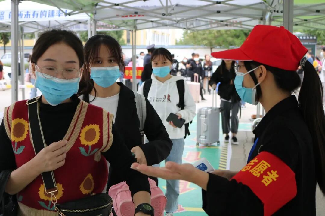 本次新生接待工作分为三个部分,各批志愿者分别在体温测量点、新生下车点及家长接待处轮流值班。为顺利开展本次工作,每一批志愿者需提前到学校北门签到,工作交接之后,按部就班地进行工作。