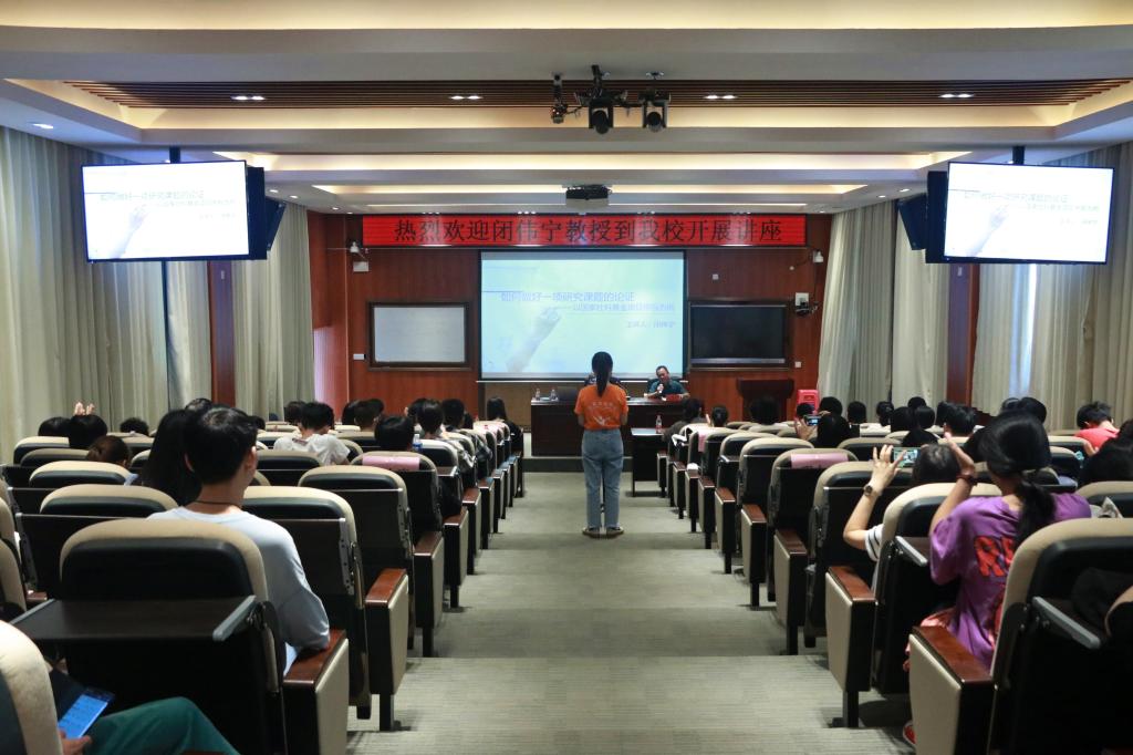 讲座伊始,闭教授以申报国家社科基金项目为例,从选题依据、研究内容、思路方法、创新之处、预期成果、参考文献、研究基础等七个模块作了系统分析。他强调,研究的选题要注重重要性、创新性、可行性和适当性等原则。研究内容要紧扣研究主题,说明研究要解决的主要问题。最后互动环节现场老师和同学互动活跃,就学术研究的知识储备,研究方法的选择等方面提出疑问,闭教授一一做了专业而又详细的解答。