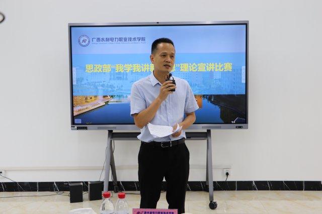 参与理论宣讲评比活动的党员结合自身思想、工作实际,聚焦习近平新时代中国特色社会主义思想,围绕 “两个确立”的决定性意义、习近平生态文明思想等十五个方面的课题,提炼学习成果,撰写讲义文稿,形成宣讲课程,进行15分钟的宣讲。本次评比活动邀请了广西机电职业技术学院马院院长黄振宣教授、广西建设职业技术学院马院院长赵胜营教授、广西交通职业技术学院马院院长周黎华教授作为专家评委。经过激烈的角逐,最终评选出一等奖5人、二等奖7人、三等奖10人。