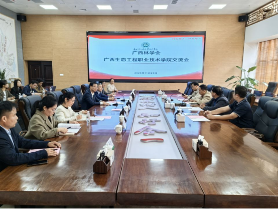 11月23日,广西林学会理事长陈代喜二级教授、宋毅克常务副理事长一行到我校走访交流,双方就教学、科研以及自然教育等内容进行了座谈交流。冯昌信校长、潘梅勇副校长,学校招生就业处、质量管理处、科研与国际合作处等相关负责人及部分教授、骨干教师出席座谈会。