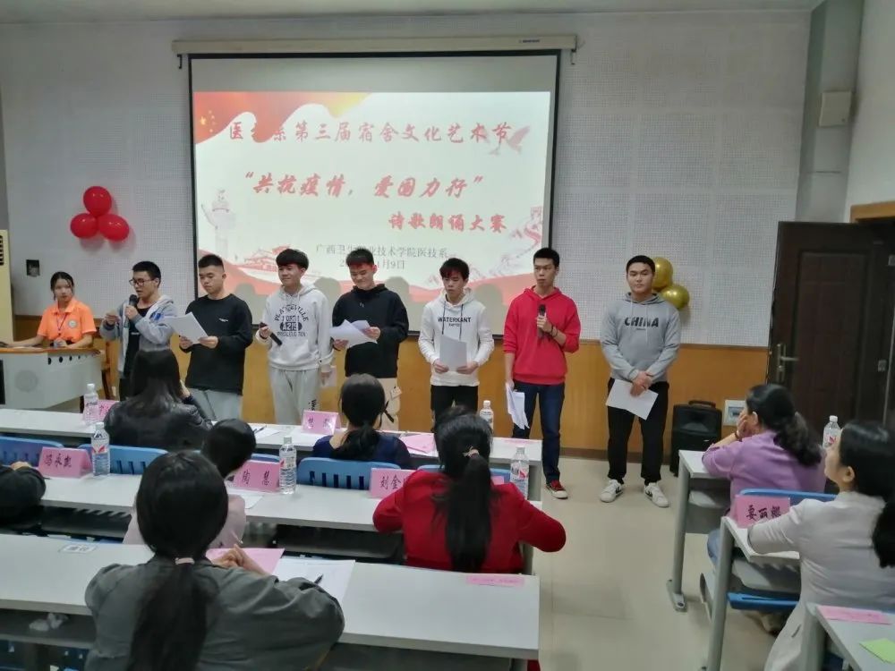 为了促进营造良好的宿舍文化氛围,增强寝室凝聚力,同时,也为了进一步展现共抗疫情的良好精神风貌,凝聚起众志成城抗击疫情的强大后备力量,深入推进爱国主义教育,并向此次疫情无私奉献的白衣天使们至以最崇高的敬意。2020年11月9日19:00,由我校医技系分团委学生会主办的“共抗疫情,爱国力行”朗诵大赛在桃源校区第二演讲厅开展。