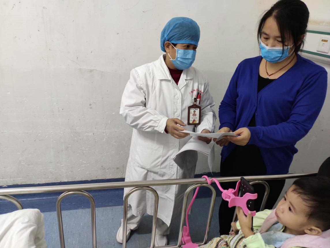 图3 王飞华护士长在给患儿家属进行新冠病毒肺炎儿童防护知识宣教