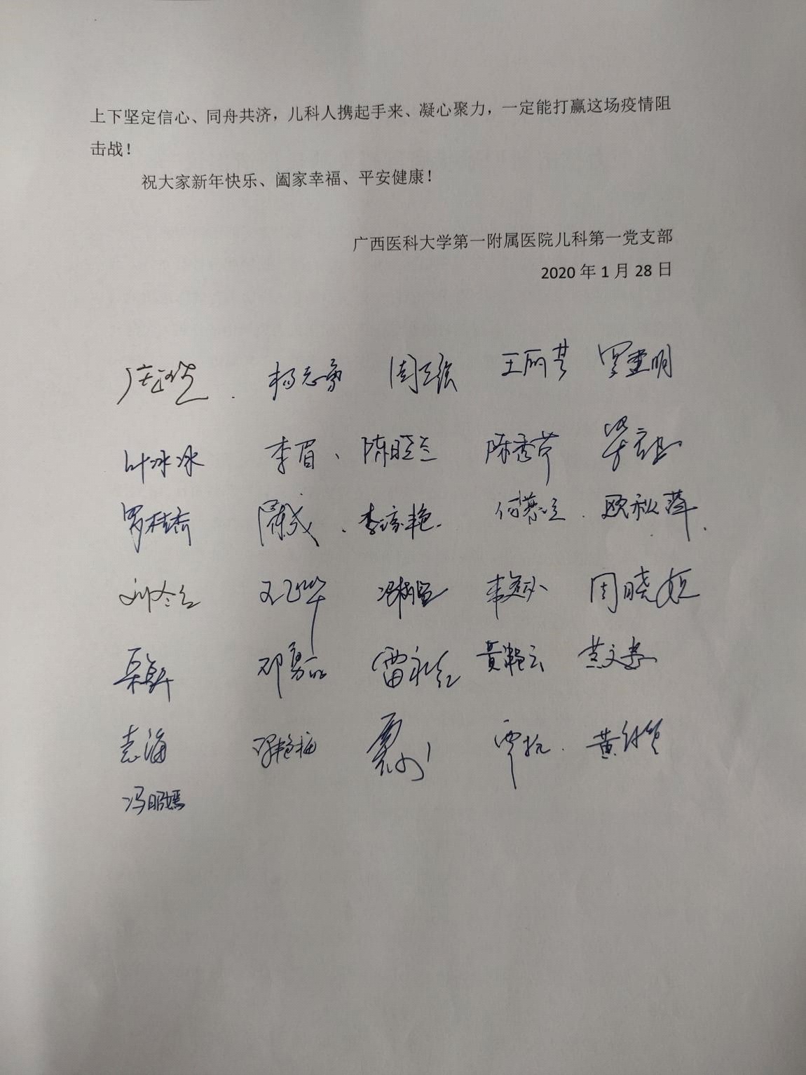 近日来,武汉等地先后发生新型冠状病毒肺炎的疫情,形势非常严峻。党中央作出重要指示,坚决遏制疫情蔓延,全国上下贯彻落实党中央,国务院的决策部署,各项防控工作有序展开,1月24日广西启动了重大突发公共卫生事件一级响应。医院党政领导高度重视疫情,根据自治区卫健委的部署,我院组建抗新型冠状病毒肺炎应急医疗救援队驰援武汉。1月26日医院党委发出征集驰援武汉志愿者的号召,1月27日上午儿科第一党支部全体党员均主动请战驰援武汉。
