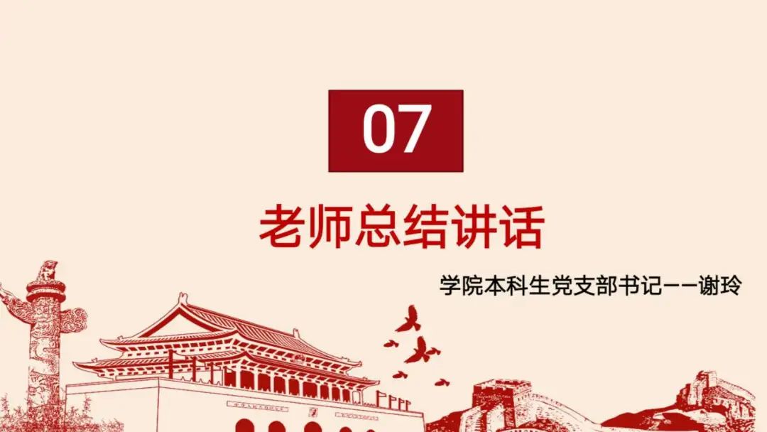 会议最后,谢玲老师对此次入党积极分子培训班的开班讲座做总结讲话,希望各位入党积极分子能够端正入党动机,有坚定的入党决心;要认真按照入党积极分子培训班的安排的课程要求来进行学习;并表示在入党的过程中是优胜劣汰的,优中取优,希望各位入党积极分子能够不断努力提升自己,不断向党组织靠拢。