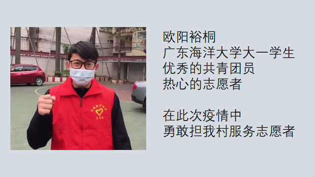 温翘瑜:向我们分享了以欧阳裕桐为代表的“90后”、“00后”学生团员在疫情阻击战中的奋斗故事,表现了他们的责任与担当。他强调奉献是人类自身道德修养的一种境界,作为入党积极分子,我们应当培养自身奉献精神,随时做好准备,当人民需要我们的时候能够挺身而出。