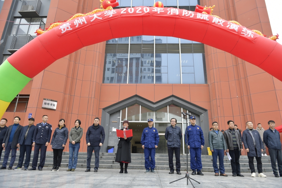 李建军宣布贵州大学2020年消防疏散演练正式开始。