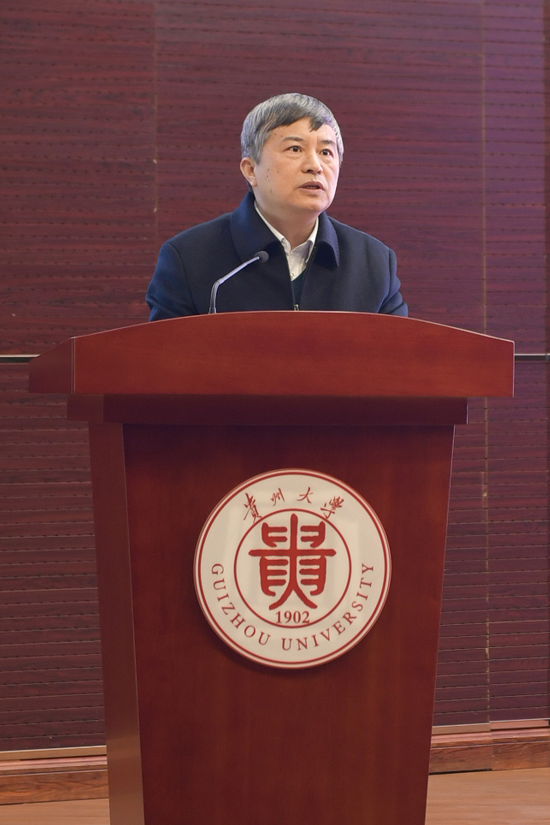 他强调,今年的《贵州省政府工作报告》首次明确提出了要“实施高校提升行动,做强贵州大学”的具体任务。我们必须要以内涵建设为主线,持续推进部省合建工作和“双一流”建设,持续推进学校治理体系和治理能力现代化,持续提升学校综合实力和核心竞争力,提高科学研究水平和人才培养质量,为实现学校“三步走”奋斗目标开好局、起好步,为推动贵州经济社会高质量发展提供更加有力的人才、科技和智力支撑,谱写闯新路、开新局、抢新机、出新绩的“贵大新篇章”,以优异成绩迎接建党100周年。