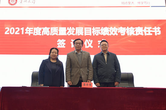 会上,党委组织部、党委宣传部、学生工作部、研究生工作部、人事处、教务处、招生就业处、研究生院、科学技术研究院、哲学社会科学研究院与学校签订了《2021年度高质量发展目标绩效考核责任书》。