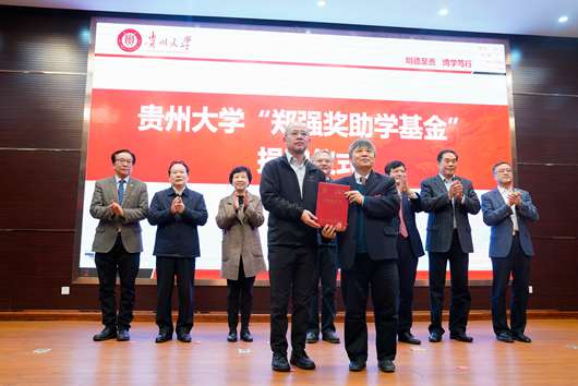 据悉,2012年6月至2017年6月,郑强教授担任贵州大学校长。2017年11月12日,为奖励郑强教授对贵州教育事业、贵州大学发展所做的重要贡献,贵州省委省政府授予郑强教授“贵州省高等教育特别贡献奖”荣誉,并给予50万元奖励。郑强教授将50万元奖励悉数捐赠给贵州大学,同时在郑强教授爱国爱教育情怀的感召下,社会各界人士纷纷捐赠献出爱心。截至2021年3月,“郑强奖助学基金”资金总额已逾1117万元。累计资助和奖励48名学生。