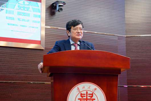 陈鸣明讲话。他对郑强同志回到贵州表示欢迎,他说,郑强同志心系贵大、情系贵州,始终把贵州当做第二故乡、把贵州大学当作自己的家,全身心投入贵州大学改革发展事业,得到了省委省政府的充分肯定,也得到了贵州大学广大师生的高度认同。即使离开贵州后,郑强同志依然时刻关注着贵州教育和贵州大学的发展,持续为贵州和贵州大学的发展加油助力。此次爱心企业家的捐赠,是有远见、有情怀、有大爱的体现,践行了新时代企业家精神。希望贵州大学进一步加强管理,真正管好、用好“郑强奖助学基金”;希望同学们不负青春、不负韶华、不负时代,珍惜时光好好学习,努力成长为担当民族复兴大任的时代新人。