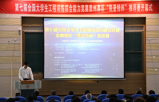 4月24日上午,第七届全国大学生工程训练综合能力竞赛贵州赛区推荐赛开幕式在贵州大学西楼圆形报告厅举行。