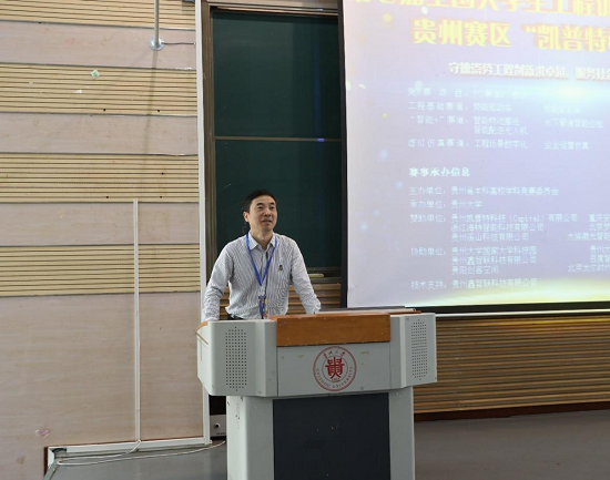 四川大学机械工程学院院长、西南金工/工训教学研究会理事长、王杰致辞。他指出,全国大学生工程训练综合能力竞赛是教育部高教司重点关注的赛事之一,在全国各大高校以及大学生中有极其重要的影响,得到了各个高校与协作单位的重视与支持。他期望在各位选手及指导老师的共同努力下,贵州赛区定会涌现出极其优秀的项目,预祝贵州赛区的大赛取得圆满成功。