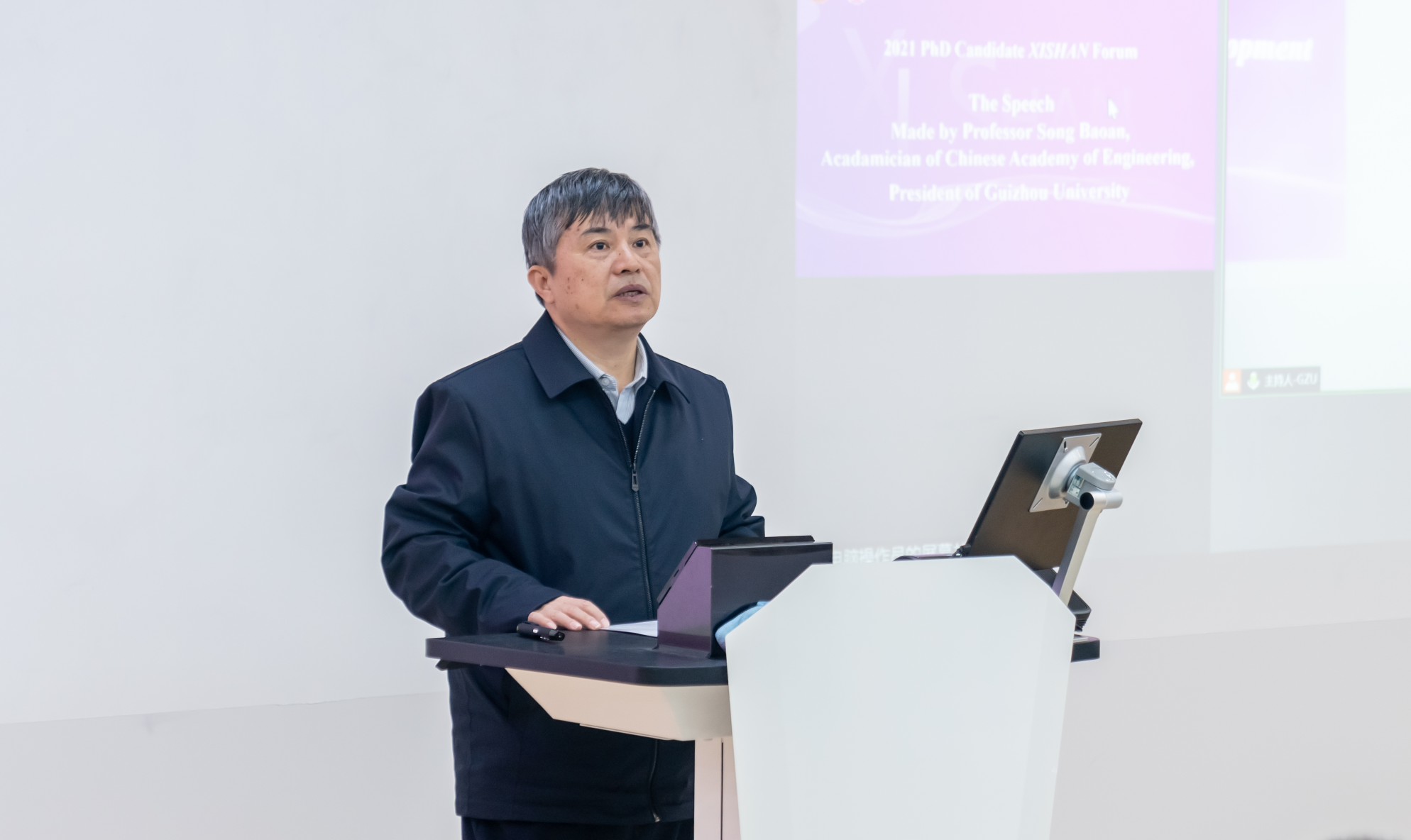 宋宝安致辞,他表示2021博士生溪山论坛是一个以青年为中心的舞台,它是充满活力和创造性的,它为广大博士生提供了一个关注世界如何发展、思考科学研究意义、交流彼此研究成果的机会,并鼓励广大青年博士生应坚持创新,学会合作联动,勤奋学习,志存高远,引领科技创新和发展,为推动构建人类命运共同体贡献青春力量。