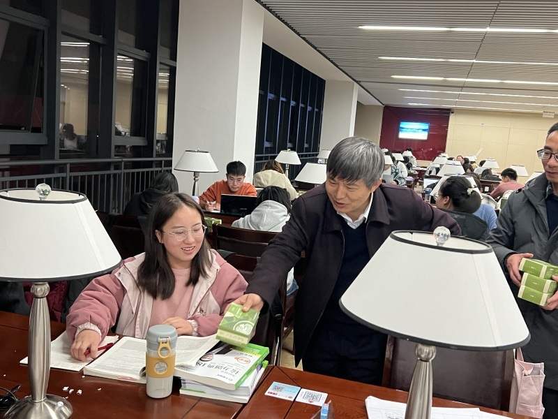 宋宝安详细询问考研同学复习备考情况,送上学校的关心和祝福,鼓励同学们要坚定信心、劳逸结合,保持充沛精力,在考试中稳定发挥、取得理想成绩,并为考研学子们发放慰问品。