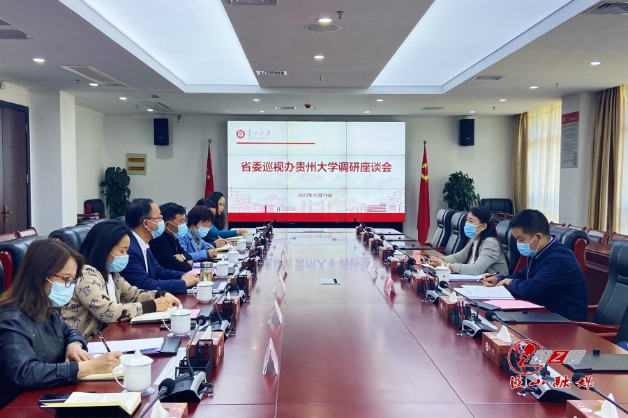 贵大新闻网讯(通讯员 梁佳颖)10月19日上午,省委巡视办到我校开展调研指导工作,省委巡视办副主任王红、四处副处长(主持工作)罗智韬、校领导骆长江、令狐彩桃、唐本文及相关部门负责同志参加了座谈会。