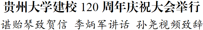 11月18日,贵州大学建校120周年庆祝大会在贵阳举行。省委书记、省人大常委会主任谌贻琴向大会致贺信。省委副书记、省长李炳军讲话,教育部副部长孙尧视频致辞,省领导卢雍政、李飞跃、陈坚,老同志龙超云、许正维、陈鸣明、相小青、陈海峰、左定超出席。