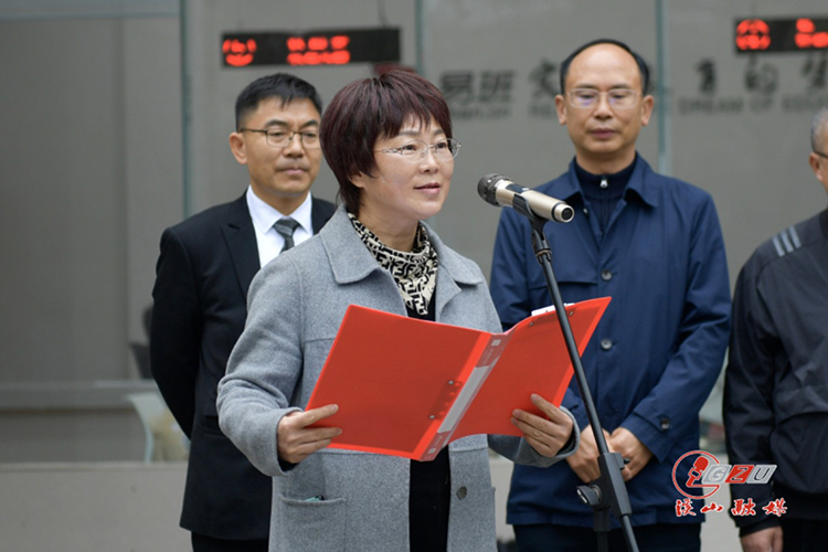 令狐彩桃讲话。她指出,“一站式”学生事务服务中心,是创新高校学生教育管理服务模式、落实立德树人根本任务的重要举措,是创建大学生思想政治教育工作的重要载体。南校区学生事务服务中心的建设与启用,是全面贯彻落实党的二十大精神,全面落实王沪宁同志参加贵州省代表团讨论时所关心的大学生“一站式”服务中心建设的具体举措,也是学校在落实高质量发展中为学生服务办的一件实事。为下一步扎实有效地开展学生服务工作、提高服务质量和水平,她提出三点意见:一是多方联动,形成服务育人合力;二是网络领跑,搭建智能服务平台;三是以生为本,共建和谐温馨校园。希望各单位和工作人员秉持“以学生为主体、服务为载体、育人为目标”的理念,将学生事务服务平台的建设和管理升级打造成为管理服务育人的重要基地,为学校高质量发展和学生成长成才作出贡献。