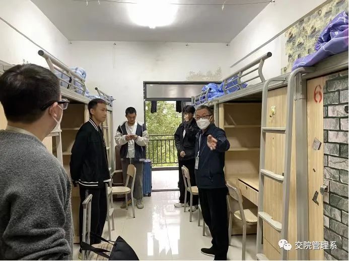 为深入了解我系新生报到后的住宿情况,掌握新生入学后的生活情况及心理状态,帮助新生更好的适应并融入大学生活,10月13日,管理工程系党总支书记安军、副书记肖梅深入2022级新生寝室走访交谈,新生班主任刘晴、孙海、何悦、朱松、杨屹宸、张远兰陪同走访。