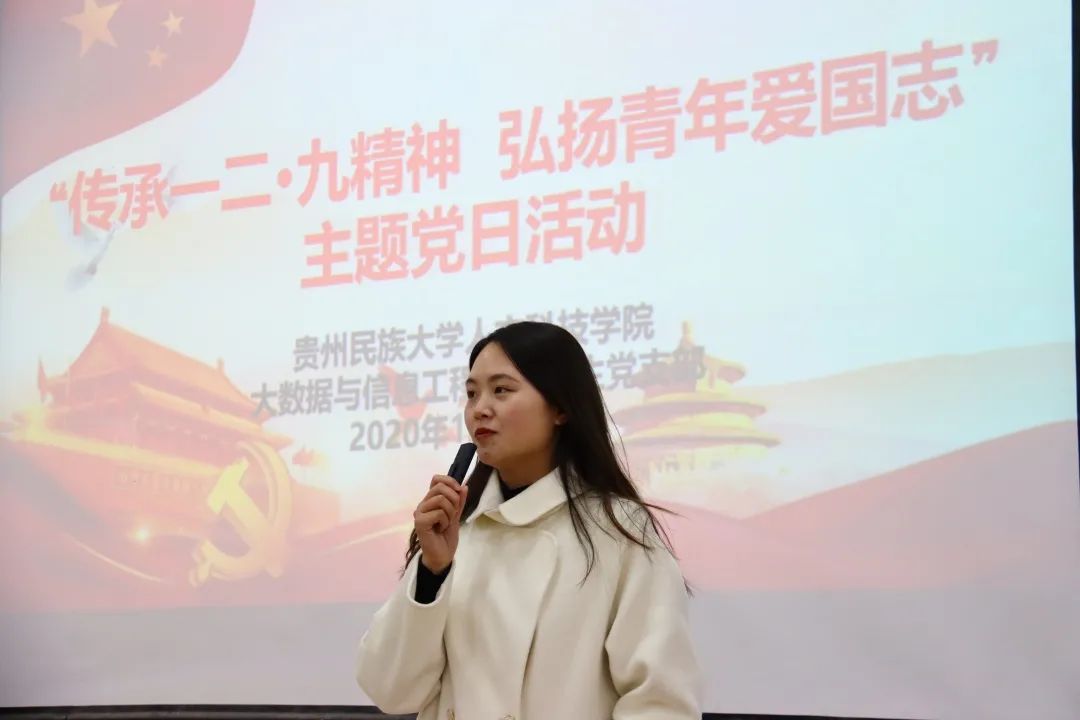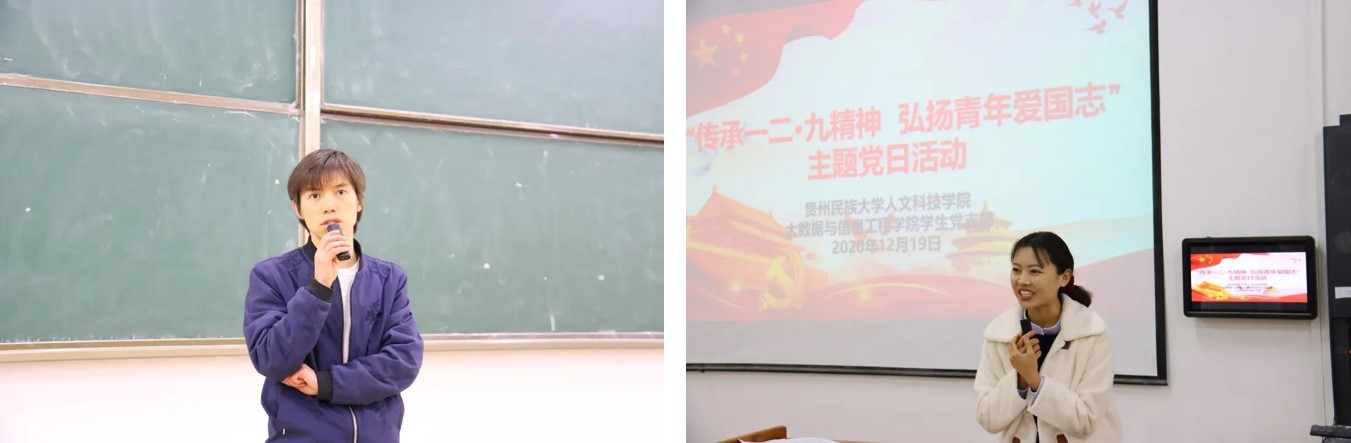 为纪念“一二·九运动85周年,进一步传承一二·九精神,激发党员和入党积极分子的爱国主义情怀,增强党员和入党积极分子的责任感与使命感。2020年12月19日下午15时,大数据与信息工程学院学生党支部于我校大学城校区自信楼114教室开展了“传承一二·九精神,弘扬青年爱国志”主题党日活动。我支部全体党员及入党积极分子参与了此次活动,本次活动由党支部书记黄欢欢同志主持。