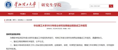 在面对疫情肆虐的背景下,在华北理工大学研究生招生工作领导小组的统一领导下,按照教育部、河北省教育考试院相关文件要求和《华北理工大学2022年硕士研究生复试录取工作办法》,管理学院圆满完成了2022年硕士研究生招生复试录取工作。