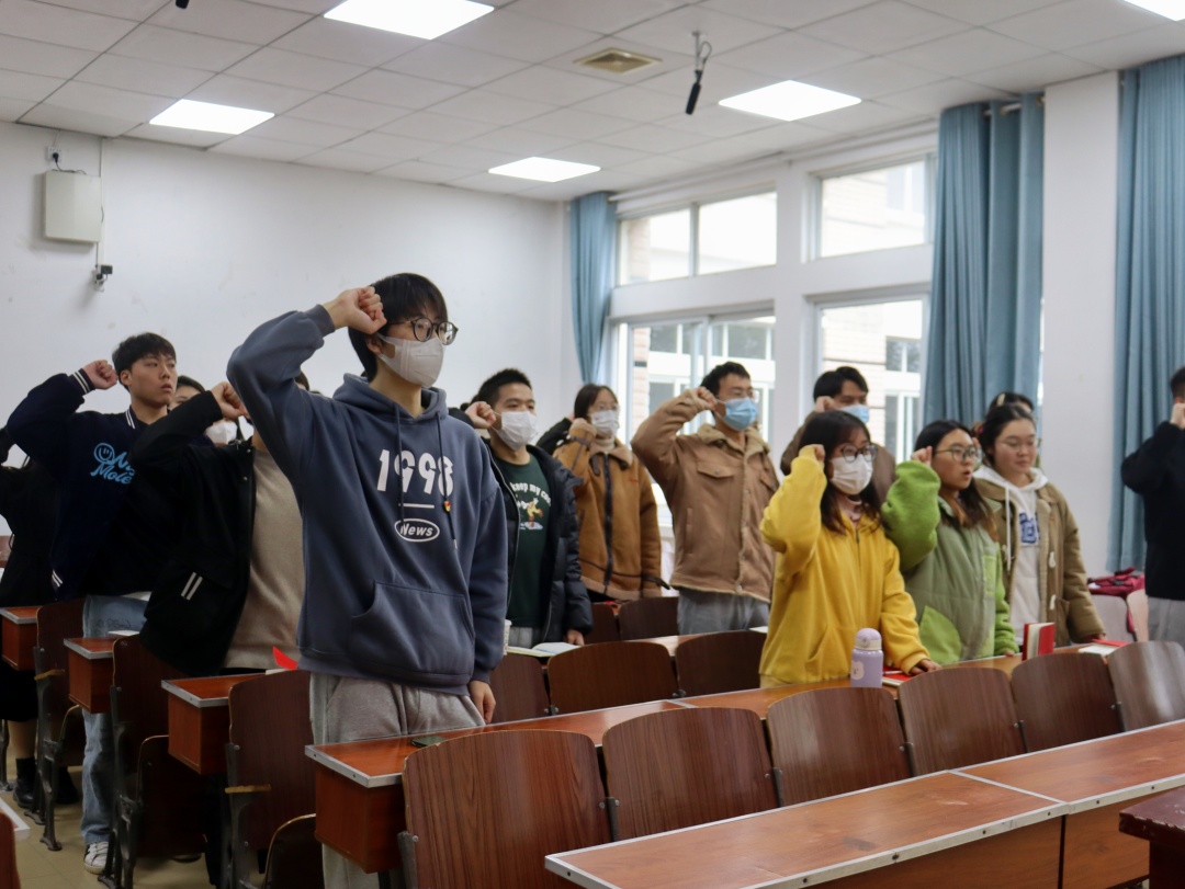 第二项:重温入党誓词,由佘妍颖同志领誓