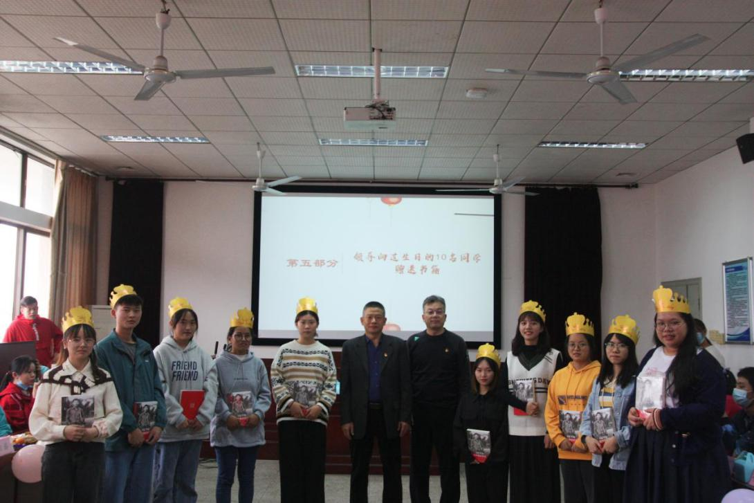 现场还举办了集体生日会,为10月、11月步入十八岁的十位少数民族同学送上生日祝福。师生齐唱生日快乐歌、分享生日蛋糕。胡少萍向十位同学赠送书籍《习近平的七年知青岁月》,勉励同学们不负韶华,努力拼搏,为实现梦想不断奋斗与前进。在欢快温馨的氛围中,同学们就学习、生活及个人发展等方面畅谈了想法与建议,与会领导老师们给予了详细的解答和回复。最后,全体师生来到手绘墙前,共同绘制心形彩墙。