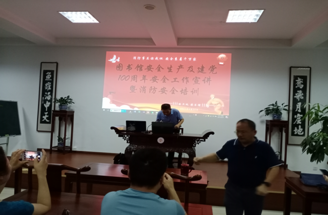 为庆祝建党100周年营造良好的校园环境,正值全国上下开展第20个“安全生产月”之际,学校党委武装部、保卫处面向全校师生开展安全生产教育宣讲活动,不断压实各单位安全生产责任,切实提升师生群众安全防范意识与能力。6月24日下午,党委武装部、保卫处处长兼部长付自生受邀前往图书馆开展安全生产暨建党100周年安全工作宣讲,宣讲活动由图书馆党委书记喻汉斌主持,馆长石初军和全体教职工参加了本次宣讲活动。