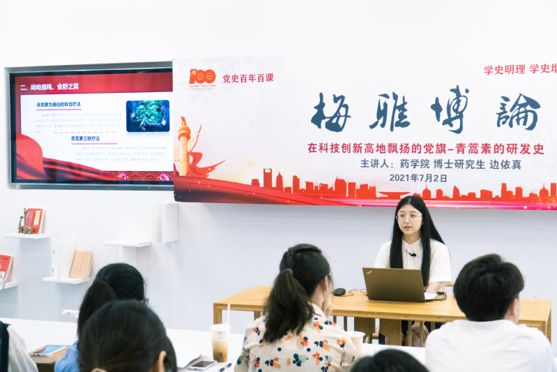 青蒿素是传统中医药送给世界人民的礼物,对防治疟疾等传染性疾病、维护世界人民健康具有重要意义。青蒿素的发现是集体发掘中药的成功范例,我国科学家在青蒿素的研发过程中付出了哪些努力?科研过程需要什么精神支撑?为了解开这些疑惑,近日,药学院硕博连读研究生边依真做客“党史百年百课”第七讲暨第69期梅雅博论,在陇上书店党建服务中心分享了题为“在科技创新高地飘扬的党旗——青蒿素的研发史”。