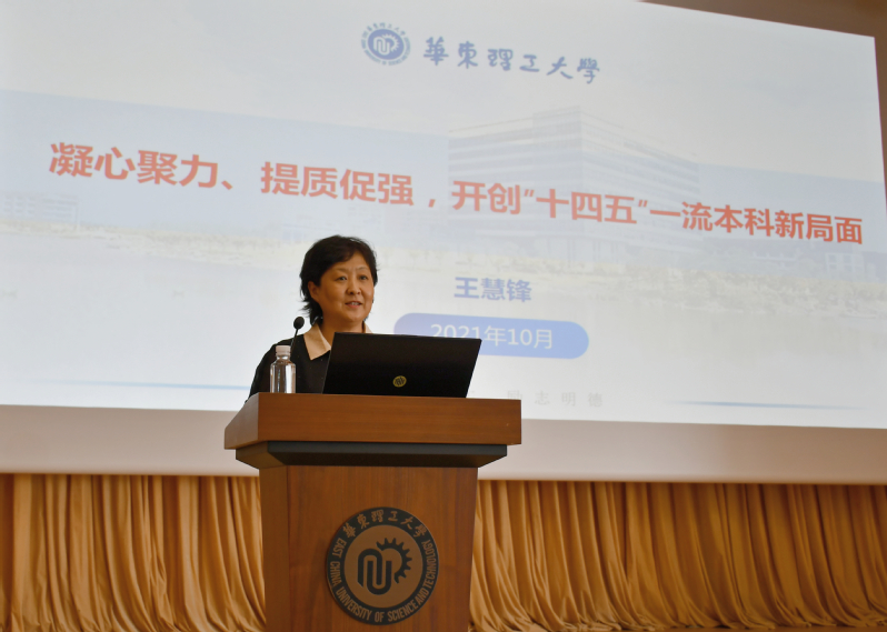 8日下午,副校长王慧锋受邀为新进教职工作专题辅导报告。她以“凝心聚力、提质促强,开创‘十四五’一流本科新局面”为题,从新时代对高等教育的要求、本科人才培养模式、本科专业建设与发展现状、本科专业建设与发展规划等四个方面,介绍了学校的本科教育教学情况。她强调,中国高等教育迈入提质创新新时代,要充分认识新时代对高等教育的要求,坚持“以本为本”,推进“四个回归”。她围绕学校办学定位与办学目标,对学校本科专业概况、人才培养模式进行了介绍。在本科专业建设方面,学校走出了集内涵发展、特色发展、创新发展于一体的专业发展道路,“十三五”期间取得了多项教育教学成果。立足新时代,学校将继续围绕落实立德树人根本任务,加强德智体美劳五育并举顶层设计,不断优化专业布局,大力推进专业内涵建设,完善课程体系规划,加强本科教学质量保障体系构建,凝心聚力、提质促强,开创“十四五”一流本科新局面。最后,她以“三牛”精神鼓舞新教师,不用扬鞭自奋蹄,继续为中华民族伟大复兴辛勤耕耘、勇往直前,在新时代创造新的历史辉煌。