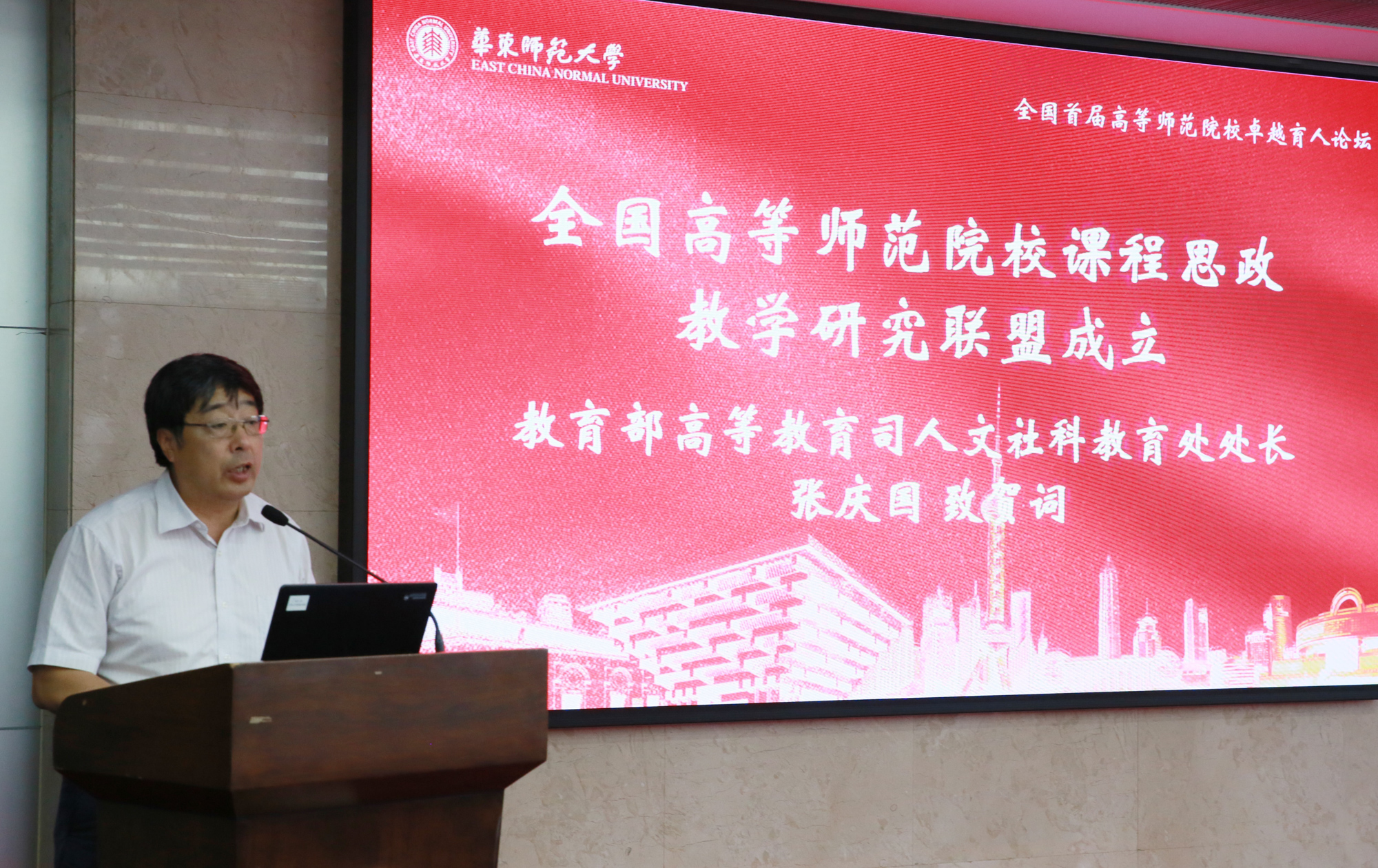 教育部高等教育司人文社科教育处处长张庆国致贺词