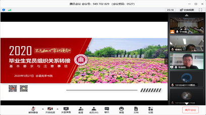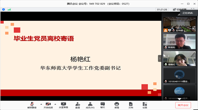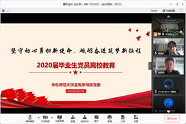 在2020届毕业生党员同志们即将离开学习、生活四年的师大校园,走上各自的工作岗位,开启崭新的人生征程之际,孟宪承书院党委于5月27日开展“坚守初心勇担新使命,砥砺奋进筑梦新征程”——2020届毕业生党员离校教育活动。此次活动也是书院教工党支部的一次特色组织生活,体现了书院师生共同成长的育人氛围。本次活动主会场设在共享空间303室,同时依托线上平台进行师生互动。