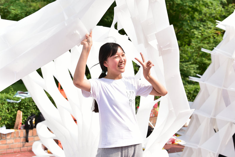 本次建造节的主题是“百年芳华”。参赛学生利用中空板,发挥想象力,为了创造一个既能促进在场交往与校园文化认同、又能体现“艺术与科学”的完美结合与互动发展的社区而各显神通。建筑师们用不同的元素打造出形态各异的作品,吸引了人们驻足观看,共同享受建筑带来的美与欢乐。最终,《与时舒卷》《风骨生花》荣获大学组一等奖,《律动》《奇花初胎》荣获现场建造高中组一等奖,《流光》荣获异地建造高中组特等奖,《书中有路》《金沙》荣获异地建造高中组一等奖。
