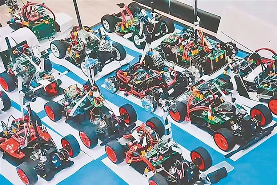 起步、疾驰、冲刺……小小的智能车在赛道上风驰电掣,一群学生正聚精会神地盯着电脑上的数据变化,小车的每一次提速和过弯,都牵动着他们的神经。