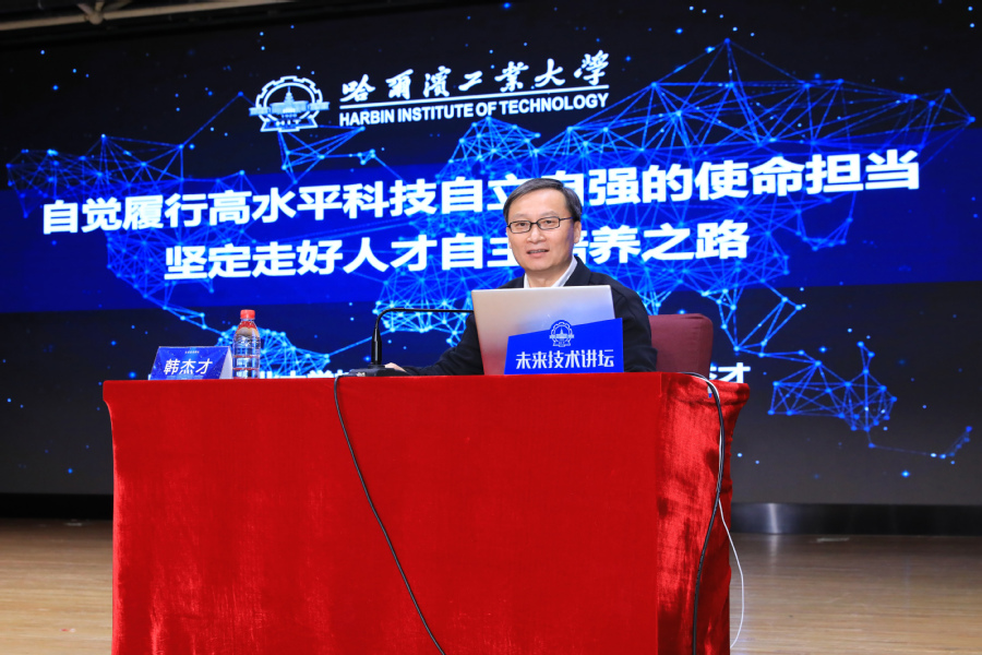哈工大全媒体(闫明星/文 辛然/图)为打造名家大师、行业领袖和优秀企业家等与学生近距离交流的高端平台,由未来技术学院主办的“未来技术讲坛”于10月4日晚在活动中心301启动。中国科学院院士、校长韩杰才,中国科学院院士、未来技术学院院长冷劲松与未来技术学院负责人、班主任代表、学生代表共同启动未来技术讲坛。韩杰才以“自觉履行高水平科技自立自强的使命担当 坚定走好人才自主培养之路”为主题作首场报告。报告在线上同步直播。