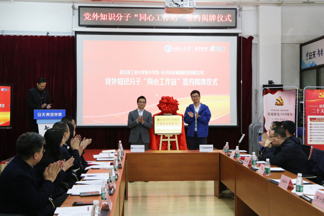 10月25日,航天学院与安天科技集团股份有限公司在安天总部基地会议室举行了党外知识分子“同心工作站”签约揭牌仪式。校党委常务副书记、统战部部长安实,安天科技集团党委书记、董事长肖新光出席会议并共同见证签约。仪式由安天科技集团党委副书记贾大雷主持。