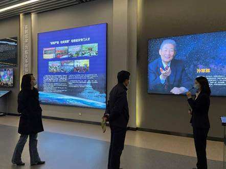 哈工大航天馆新馆建成于百年校庆前,建筑采用工业风格的格栅外墙,最外面矗立着我校校友刘竹生院士设计的长征二号F捆绑式火箭,展现了我校航天底色浓厚的办学特点。老师同学们在一楼展厅参观过程中,通过丰富的历史资料和实物展品,可以了解到中国航天事业从何发展而来,通过北斗、天宫、天问等模型展品,让大家知道中国航天事业又将走向何处。