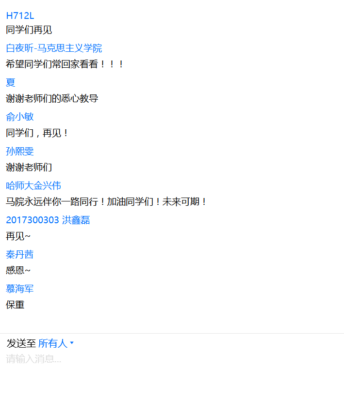 段虹教授向马克思主义学院2020届全体毕业生表示祝贺,向辛勤培育毕业生的老师们致以崇高的敬意,同时叮嘱全体毕业生们一定要保持坚定的理想信念,追随伟大人物的思想,努力学习科学理论,树立专业自信,在推动社会发展的进程中彰显个人价值。还要保持持续的学习能力,做一个有全面责任感的人,坚持读书的好习惯,积极主动关注社会,培养自身高尚的道德情操,崇德修身以提升人生境界。在全体师生的共同见证下,2020届毕业生“云”毕业典礼暨学位授予仪式圆满结束。