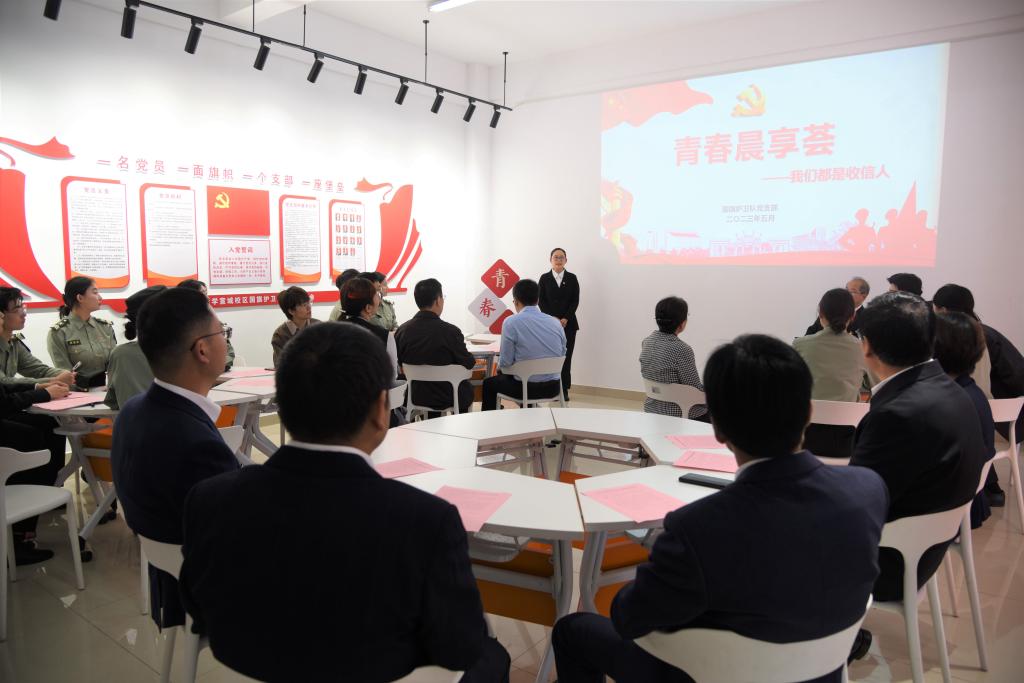 国旗下的思政课结束后,国旗护卫队党支部组织党员代表开展了“我们都是收信人”青春晨享荟活动。国旗护卫队成员苗俊豪同学在国旗下讲述“国旗诞生”微党课,党支部书记王冉带领支部成员学习习近平总书记给中国农业大学科技小院的学生回信,党员代表分享了学习感悟。