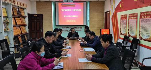 2021年3月30日下午,水利工程学院党总支教工水工技术与管理支部在党员活动室(SY5306)举行了主题党日活动,主要内容为开展党史知识竞赛。