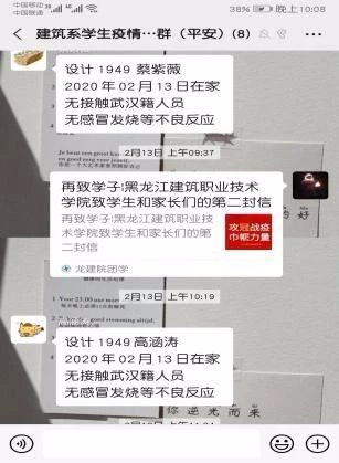 疫情期间,自接到工作要求以来,通过电话、微信等各类线上联系方式开展宣传教育工作。进行信息收集、修改和复核工作;及时转发学校宣传文件,推送权威媒体防疫知识和宣传报道,力求用家长和学生听得到、听得懂、听得进的方式开展宣传教育工作。第一时间将学院官网和龙建院团学公众号的防疫知识、对学生的叮咛、祝福和学院关怀、心理疏导、传达到每名学生。为了按时完成给团委提供班主任素材。她一个个对话框地复制、粘贴。由于建筑系老师人数较多,认真收集文字和图片的时候,统计工作都无处分身的她,仍然是集中精力,全力以赴。本着对团委工作的大力支持的情怀、本着对建筑系领导、老师、班主任们的感激之情,她将汇总工作做成了样板。并积极转发公众号推文,充分调动了本系疫情统计工作的积极性和主动性,坚定了师生共同战胜疫情的信心和决心。