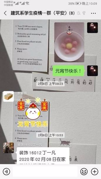 用心是做好工作的前提,为学生服好务是出发点。在为武汉加油的同时,她更加牵挂的是自己的学生,希望学生们都健康平安,远离疫情。对待工作任务一丝不苟,严格按照学院团委的要求,及时将重要工作通知传达给班主任老师、学生干部、班级负责人。在了解到本系有三名湖北籍学生后,第一时间与他(她)们通话并传达了学院及系领导对他(她)们的关怀和叮嘱。建立了建筑系学生疫情重点观察群,每天通过微信群与学生交流,关注他们的健康状况,分享音乐文章,鼓励学生积极阳光面对,使学生感受到了来自学校的温暖和爱护。配合学院教务积极开展线上学习宣传,鼓励学生利用远程教育平台做好线上学习相关工作,将停课不停学落实到实处。